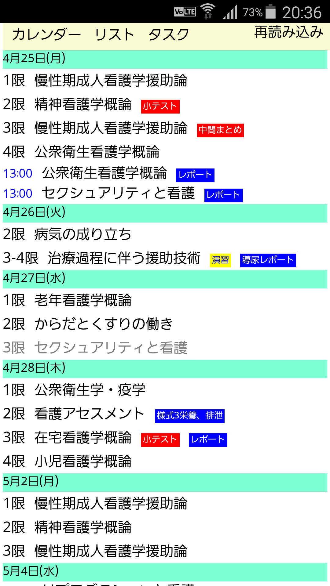 (詳細はシラバスに載っているので主に時間割変更や試験や課題の予定確認用)