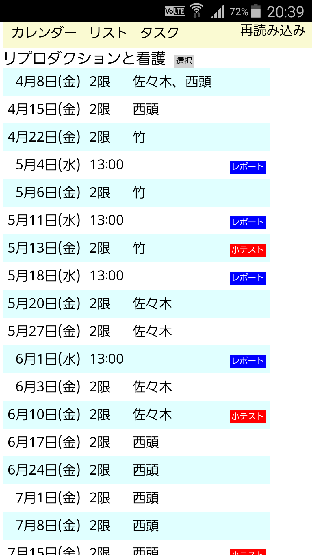 タスク表示(リスト表示のうち課題だけを抽出したもの)、