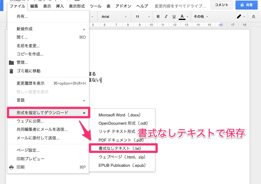 GoogleドキュメントでMarkDown形式の編集してから出力をする