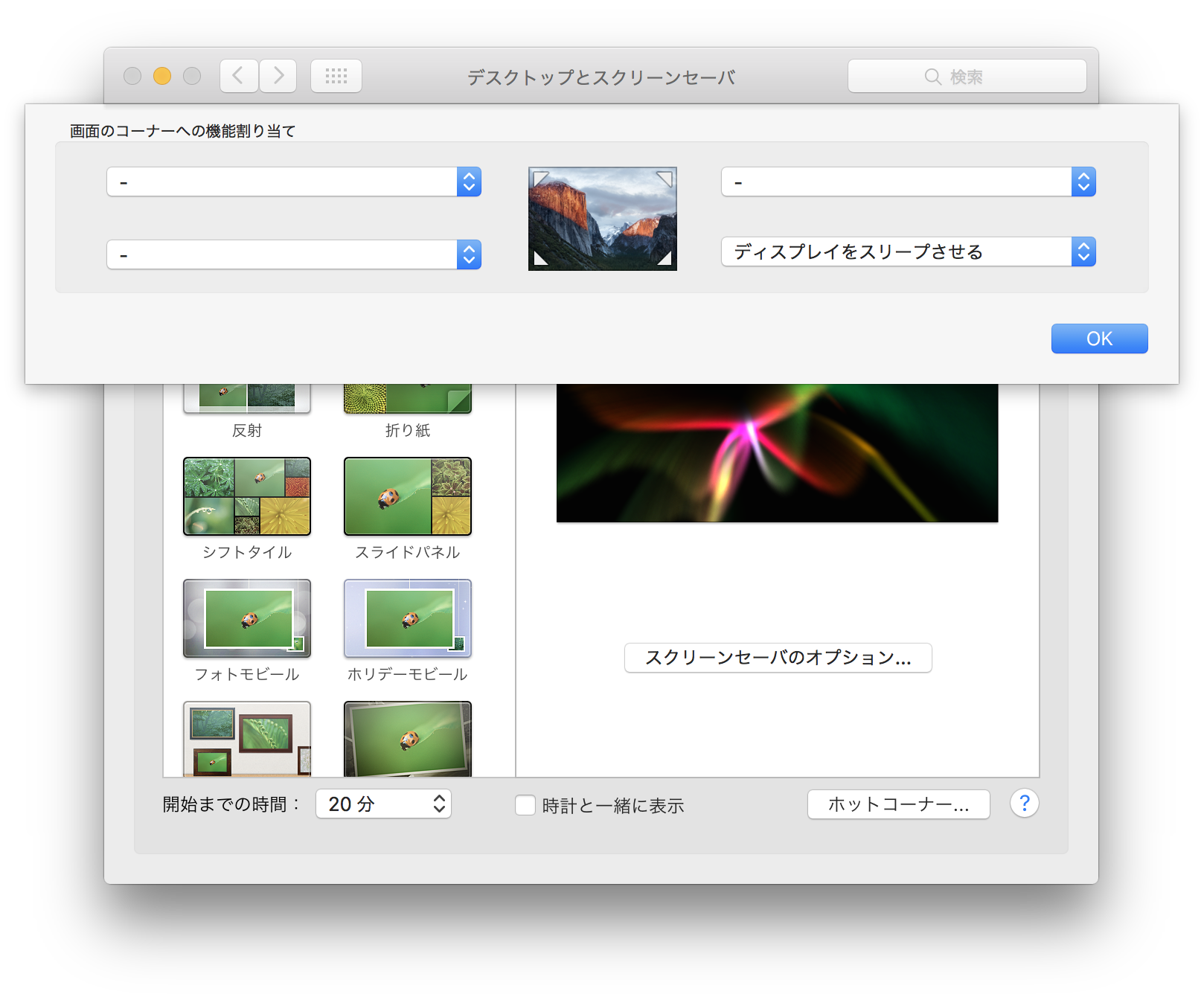 Macにて画面の四隅にカーソル移動してスリープさせる