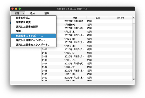 Google日本語入力で日付入力 by.Python