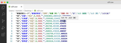 先に紹介しましたRainbowCSVよりもシンプルですが、こちらの方が使いやすいかもしれません。