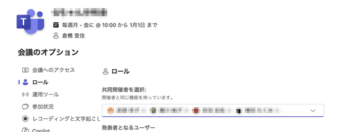 2. 会議のオプションから参加者を共同開催者として設定する