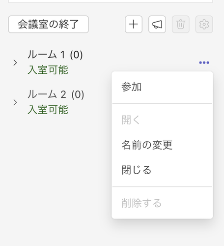 各ルームは 「...」から操作できます