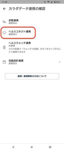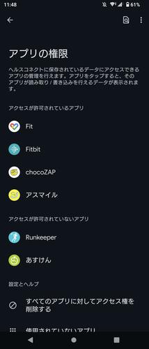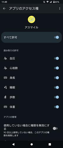 アプリごとにヘルスコネクトとの連携の可否を許可する必要があります。