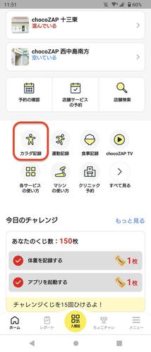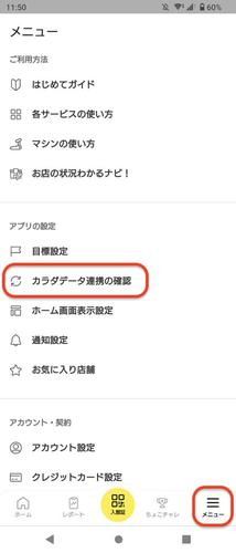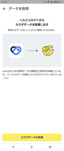 chocoZAPは メニュー → カラダデータ連携の確認 でヘルスコネクト連携ができていることを確認したら、
