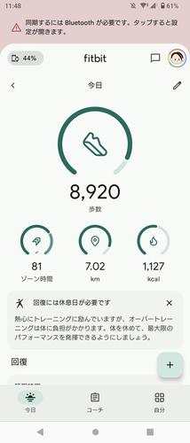 Android の Fitbitアプリは、デバイスとペアリングしていないので警告が出ますが、iPad mini と同じアカウントでログインしていれば