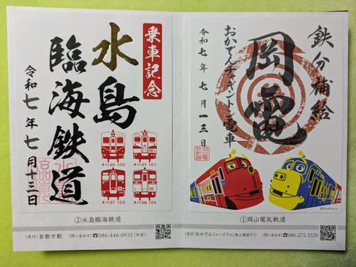 一人でせっせとこの鉄印帳「①と②」(岡電と水島臨海)の鉄印をいただき、
