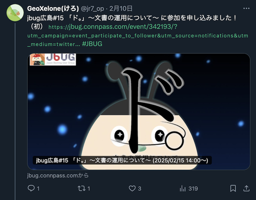 kyokucho1989 さん 「JBUG広島#15 とドキュメント」